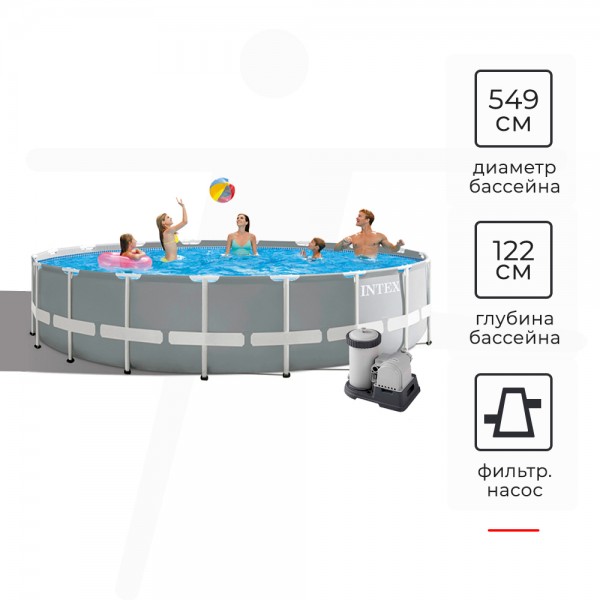Бассейн INTEX каркасного типа имеет сборную и надежную конструкцию для установки на открытом участке. Модели Prism Frame оснащены усиленной рамой и полипрпиленовой лентой по контуру всего бассейна.