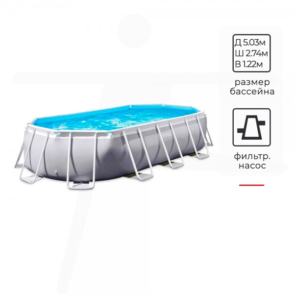 Бассейн INTEX каркасного типа изготовлен по современной технологии PRISM FRAME. Легко монтируется на ровной поверхности (без добавки песка).