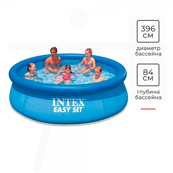 Надувной бассейн INTEX легко собирается и устанавливается на площадке без специальной подготовки грунта.