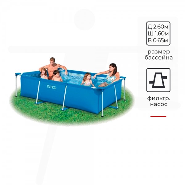 Бассейн INTEX каркасного типа имеет сборную и надежную конструкцию для установки на открытом участке.