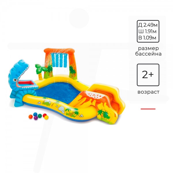 | Комплектация | бассейн, горка, брызгалки, игровой модуль «Голодный динозавр», шарики - 6 шт |