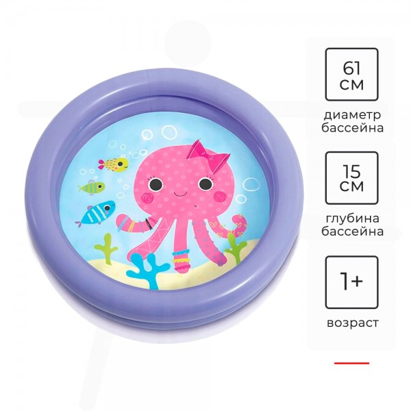 Модель имеет яркий дизайн. Надувные бортики обеспечивают комфорт и безопасность детей. Бассейн легко надуть и очистить.