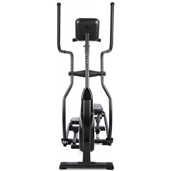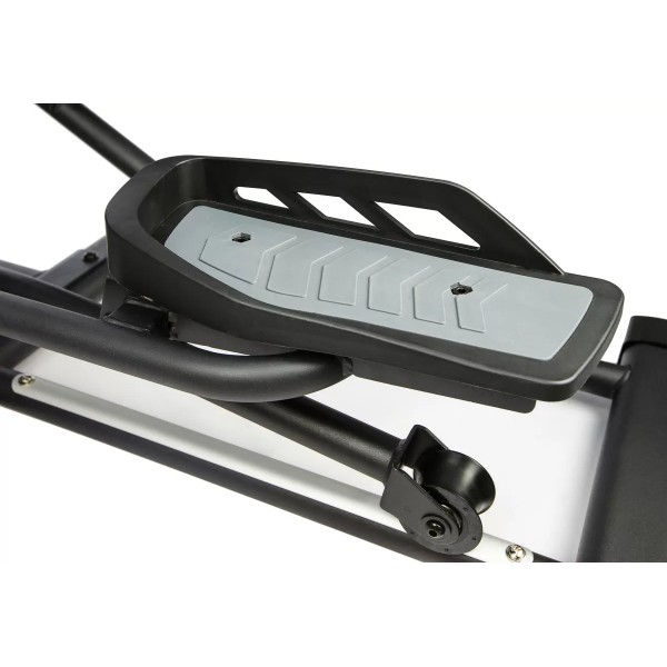 Модель использует маховик весом 7 кг и предлагает достаточно комфортную длину шага в 42 см. Возможны 24 уровня нагрузки, есть регулировка в Watt (30-350, шаг 10). Проверка пульса выполняется встроенными датчиками.