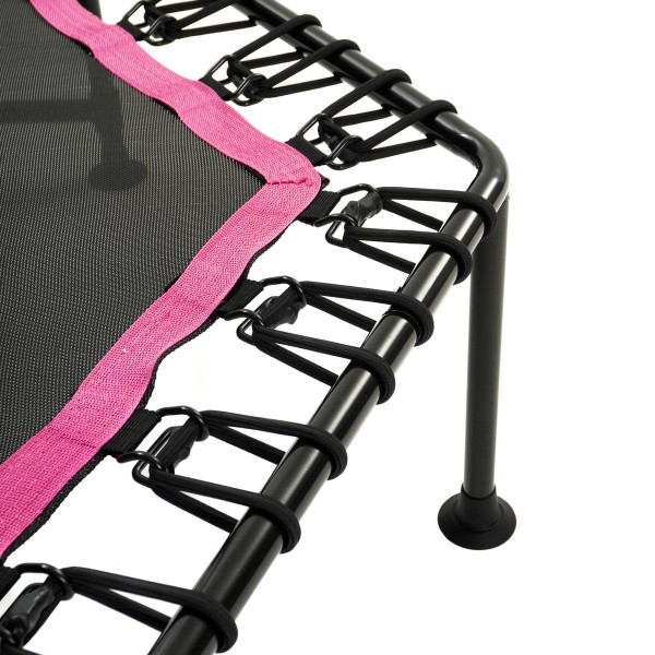 Конструкция имеет 6 надежных опор и специальные эластичные жгуты в качестве пружин. Поверхность изготовлена из современного Перматрона, который используют для прыжковых полотен ведущие мировые бренды. На экране консоли можно просматривать число прыжков и расход калорий, а также время тренировки.