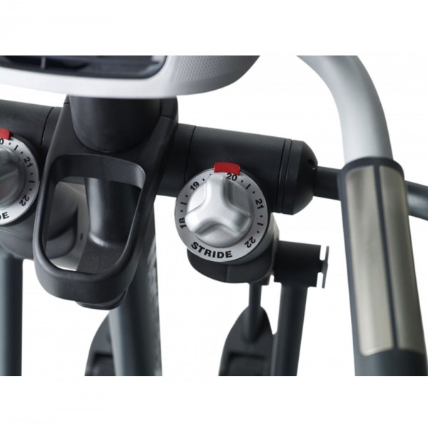 Длина шага легко меняется регуляторами от 46 до 56 см. Значение уровня нагрузки задается одной кнопкой. Для снятия точного значения частоты пульса модель комплектуется кардиопоясом.