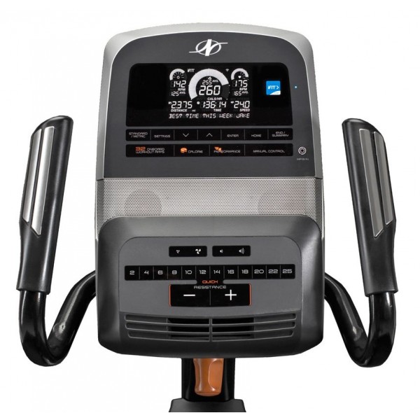 Нагрузка тренажера сделана по бесшумной магнитной системе, в которой используется электродвигатель SMR. Все маховика составляет 9 кг, а электронная быстрая настройка Digital OneTouch позволяет подобрать один из 25 уровней нагрузки.