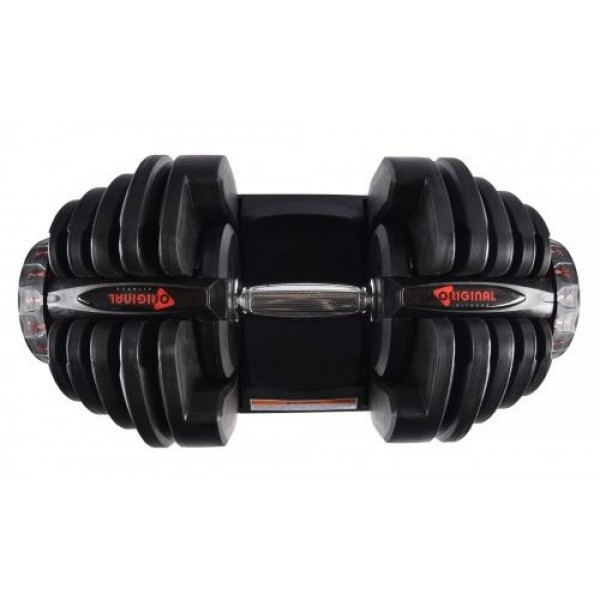 Гантель Original Fitness позволяет изменять вес в интервале 4,5-40 кг. Для выбора используется поворотный диск. Шаг регулировки - 2 кг (от 5).