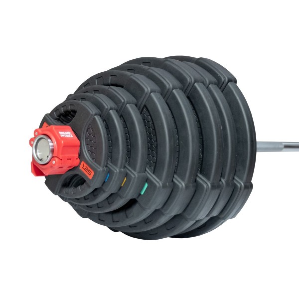 Штанга Original FitTools FT-2HGSET-218 представляет собой комплект из грифа с упорными подшипниками и 14 дисками. Вес 218 кг.