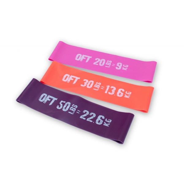 Комплект Original FitTools FT-75-AFINA состоит из трех мини-эспандеров (фитнес-резинка) разной нагрузки шириной по 7,5 см.