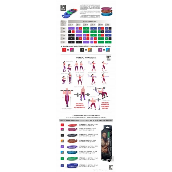 Комплект Original FitTools FT-EX-208-SET5 состоит из пяти ленточных эспандеров разной нагрузки.