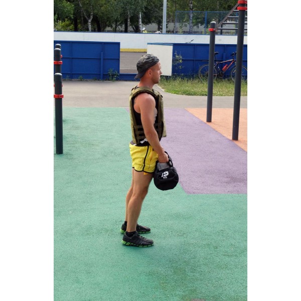 Сэндбэг Original FitTools FT-SNDBG-20 наполняется песком, крошкой, дробью или камнями. Модель выдерживает вес до 20 кг. Двойная застежка на липучку, также есть молния. Тройные рукоятки высокой жесткости не будут натирать руки, но выполнять упражнения желательно в перчатках. Наполнитель в комплект не входит!
