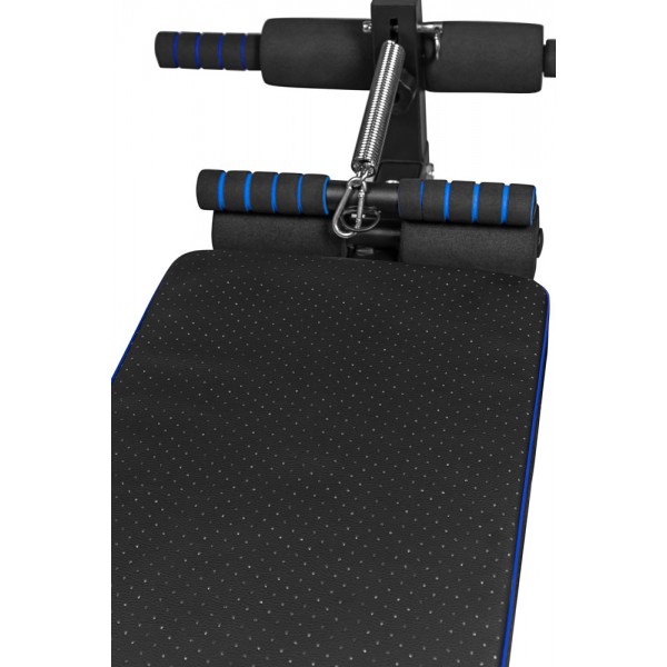 Profit MDK-0102B – изогнутая скамья для тренировки пресса в комплекте с тягой для эффективной проработки мышц живота. Максимальная масса пользователя 100 кг.