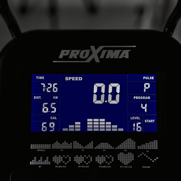 PROXIMA Amanda привлекает внимание сочетанием цены и функциональности. Этот эллиптический тренажер имеет отличную длину шага, демонстрируя при этом разумную цену для переднеприводных моделей. Ограничение веса 130 кг.