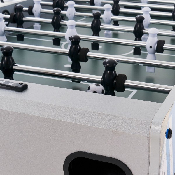 Proxima Messi 48' G34800-1 - надежный игровой стол для футбольных сражений с друзьями в любом возрасте. Комфортные рукоятки обеспечат долгий матч. Стильное цветовое решение будет смотреться в современном интерьере.
