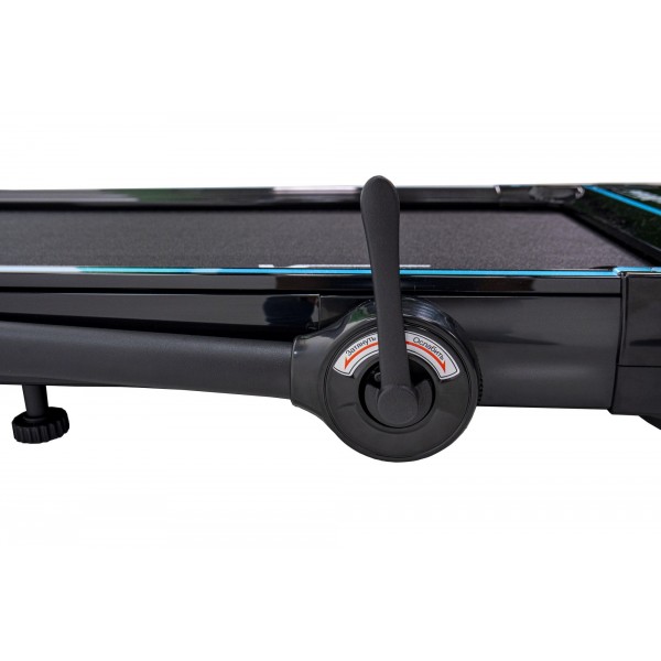 Модель можно использовать для бега или ходьбы, скорость может составлять до 12 км/ч (с поднятой консолью). Для ходьбы дорожку можно использовать в сложенном виде, не поднимая консоль. Размер полотна достаточен для занятий при среднем росте. Предусмотрена амортизация для снижения вредного воздействия на суставы.