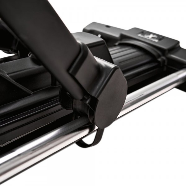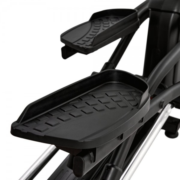 Спортсмен сможет выбрать на консоли нужный уровень нагрузки из 32х вариантов, за равномерность движения отвечает сбалансированный маховик массой 18 кг. В конструкции использованы подшипники в каждом сочленении и качественный пластик для защитных кожухов. Важным параметром является возможность изменения наклона рампы ( 4 варианта - 4/5,5/7/9 градусов). Длина шага составляет комфортные для пользователей среднего и высокого роста 50 см, межпедальный интервал 13см, высота шага 20 см.