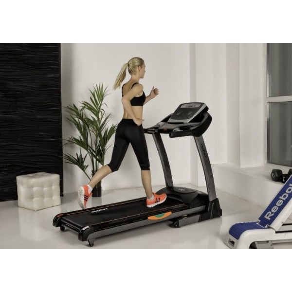 Двигатель POWER RIDER разгоняет полотно дорожки до 22 км/ч. Модель отличает продуманная система амортизации, которая включает слаженную работу пяти компонентов (деки, опор, амортизаторов и нескольких демпферов). Меняя наклон можно добавлять нагрузку. Модель комплектуется встроенными датчиками контроля пульса Polar.