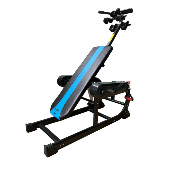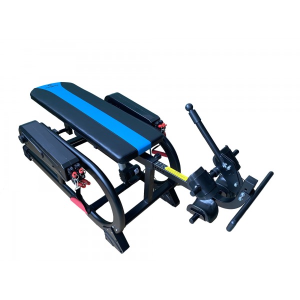 Модель имеет горизонтальную конструкцию и мягкую спинку, что будет особенно удобно для новичков. Надежная фиксация включает валики. Также в комплекте эспандеры из прочного латекса.