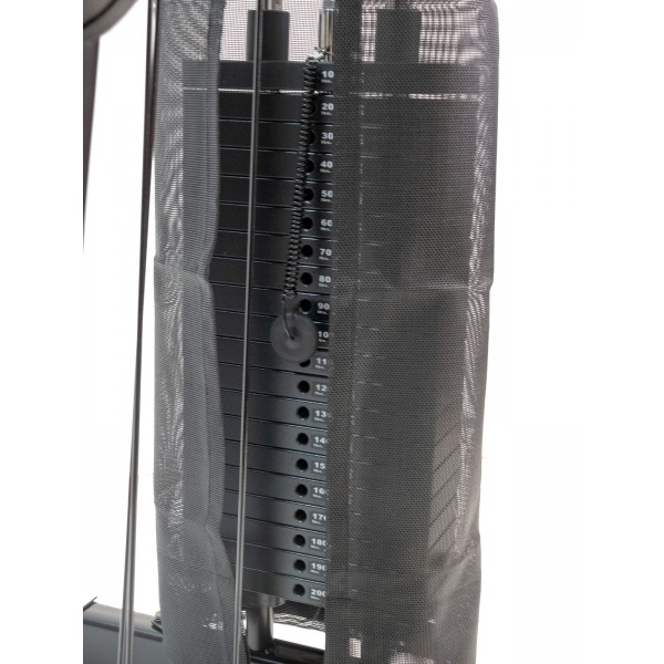 Нагрузку модели обеспечивает стек весом 90 кг (без возможности увеличения). Он состоит из 20 пластин с пластиковыми элементами для тихого хода. Станция предлагает: