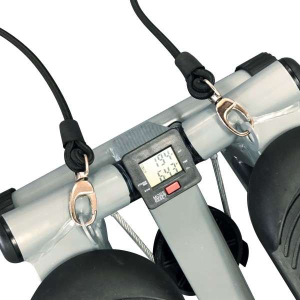 В основе конструкции 2 гидравлических цилиндра и педали с зависимым ходом. Также прилагаются эспандеры, что обеспечит нагрузку и для рук.