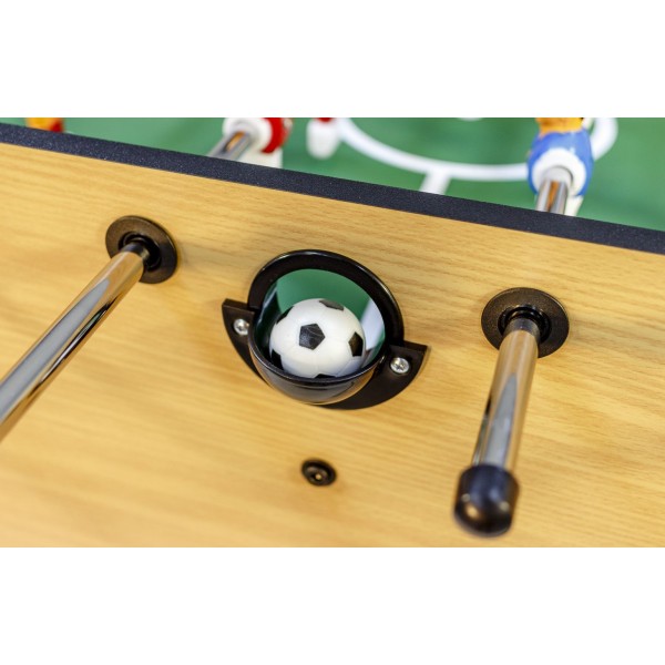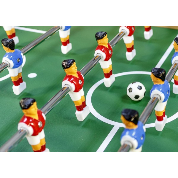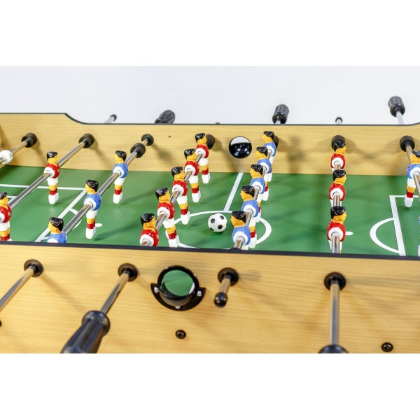 | Дополнительные характеристики | расположение игроков 3-2-5-3 (по 13 для каждого игрока), механический счетчик очков, диаметр мяча 36 мм (2 в комплекте), регулировка высоты |