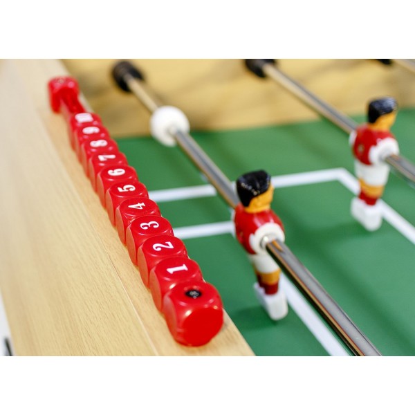Scholle LYNX - удобный стол для футбола с возможностью складывания и изменения высоты. В игре используются фигурки из прочного пластика (22 шт). Установлено механическое устройство для подсчета очков.