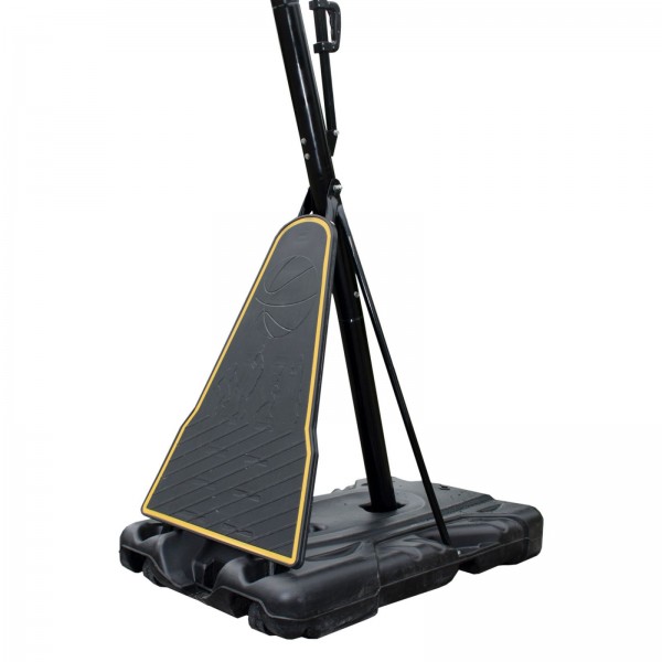 Scholle S024 - мобильная баскетбольная стойка с регулировкой высоты кольца 2,3-3,05 м. Может использоваться на улице или в зале. Кольцо выполнено с усиленным ободом и амортизаторами, а также всепогодной сеткой. Диаметр каркаса из металла 8,6 см. Для устойчивости основание наполняется водой или песком (объем на 150 кг). Модель имеет ролики для легкого перемещения и защитную панель для безопасности игроков.
