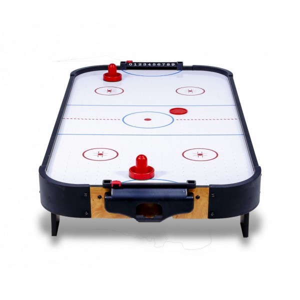 Стол оснащен механическим устройством для подсчета очков. Две биты и шайбы в комплекте.