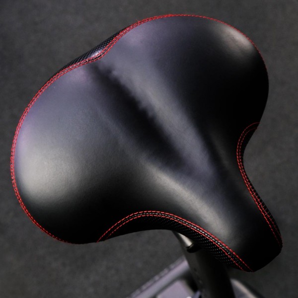 Тренажер предлагает 25 уровней сопротивления с регулировкой на консоли. Комфортное сидение можно настроить в двух плоскостях, нескользящие педали надежно фиксируют ступню, есть регулировка руля. Датчики пульса позволяют контролировать работу сердца, можно дополнительно подключить кардиопояс.