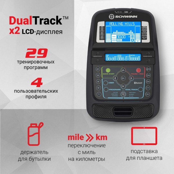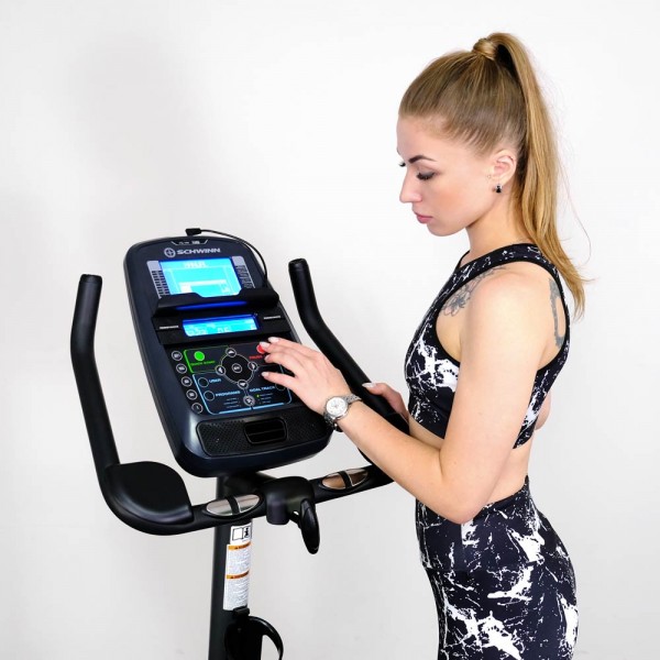 Schwinn 570U – вертикальный велотренажер от известного американского производителя с отличной подборкой программ и подключением к дополнительным функциям по Bluetooth.