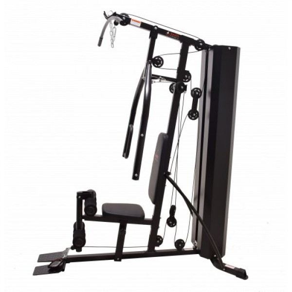 Ограничение по весу спортсмена - 150 кг. Весовой стек состоит из 15 плит общим весом 70 кг, есть защитный кожух. За счет передаточного коэффициента роликовой системы 1:1,35 вес стека увеличивается до 94 кг. Надежный трос окружен нейлоновой оболочкой. Комплекс позволяет выполнить широкий спектр упражнений на разные группы мышц. Модель оснащена: