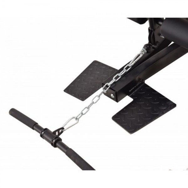 Конструкцию мультистанции отличают высокая надежность и современный дизайн. Модель поставляется с весовым стеком, который состоит из 15 блоков общим весом в 90 кг. Система роликов изготовлена с передаточным коэффициентом 1:1,35 поэтому реальный вес стека для тренировки увеличивается до 121 кг. На стеке есть защитный чехол. Стальной трос выдерживает повышенную нагрузку благодаря прочному нейлоновому покрытию, есть ограничители для безопасности. Тренажер оснащен: