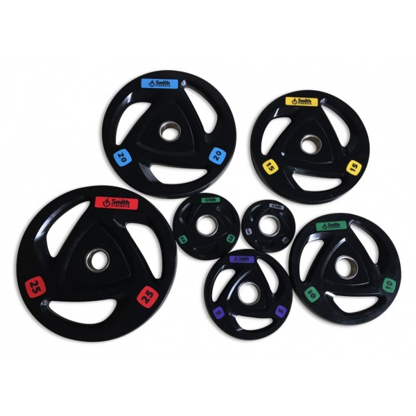 Обрезиненные диски SMITH STRENGTH разного веса имеют тройной хват и обрезиненную поверхность.