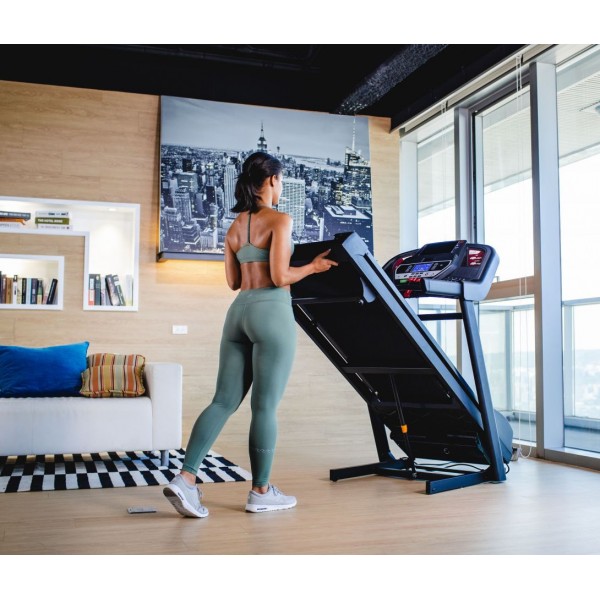В тренажере установлены мотор на 2,25 л. с. и прочная дека толщиной 18 мм с двухслойным беговым полотном. Высококачественные элементы позволяют нагружать тренажер до 136 кг при скорости движения до 19,3 км/ч. Комфортный размер полотна сочетается с современной системой амортизации, благодаря которой суставы нагружаются на 40% меньше (по отношению к обычному бегу, например на асфальте).