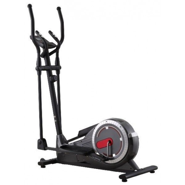 Модель использует магнитное сопротивление и маховик весом 7 кг, есть 8 уровней нагрузки. Датчики контроля пульс помогут проверить работу сердца. Тренажер имеет комфортные педали с антискользящей поверхностью. Длина шага данного эллипсоида составляет 35 см.