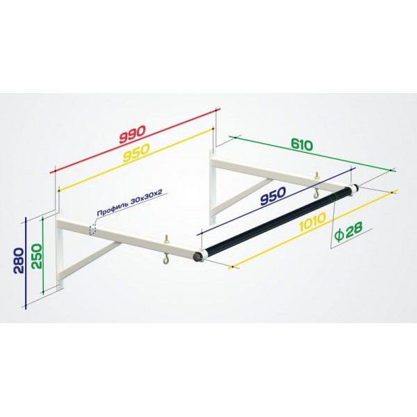 Турник SportElite Спектр 1 отличается высокой надежностью (нагрузка до 150 кг). Вынос от стены 61 см. Предусмотрено кольцо для крепления боксерского мешка.