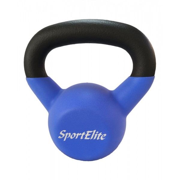 Гиря чугунная SportElite имеет дополнительное виниловое покрытие для защиты пола. Ручка подходит для хвата 1-2 руками.