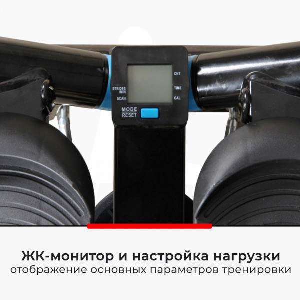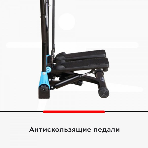 Тренажер использует гидравлический тип сопротивления, поэтому он работает тихо и плавно. Установлены поворотные поручни для безопасных тренировок. В комплект поставки входят эспандеры, что позволяет добавить нагрузку на верхнюю часть туловища.