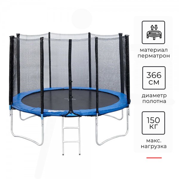 SportElite GB10202-12FT – батут для установки на улице с удобной лестницей. Модель выполнена из качественных комплектующих и рассчитана на вес до 150 кг.