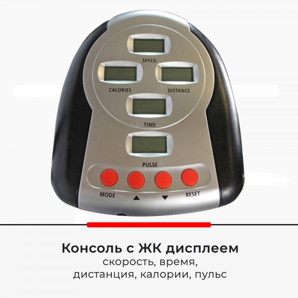 Сама беговая дорожка имеет механическую конструкцию, которая не ограничивает скорость движения спортсмена. Есть ручная регулировка угла наклона (3 варианта) и проверка частоты пульса.