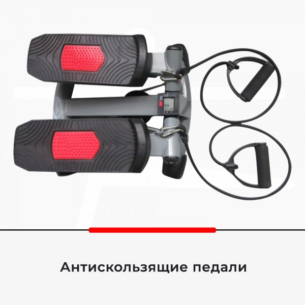 Тренажер с гидравлической нагрузкой имеет поворотную конструкцию. Модель предлагает удобные педали и надежные эспандеры.