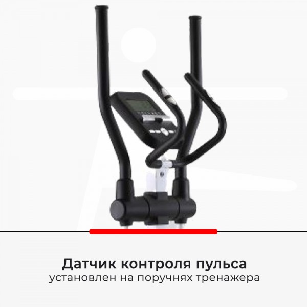 Модель имеет 8 уровней нагрузки с маховиком весом 7 кг. В поручни встроены датчики контроля пульса. Тренажер оснащен широкими педалями с антискользящей поверхностью. Длина шага 40 см.