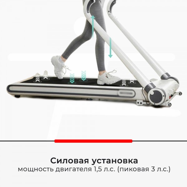 Тренажер позволяет развить скорость до 15 км/ч, а ширина полотна 48 см сделает такую тренировку достаточно комфортной. Модель легко складывается для компактного хранения, например, под кроватью.