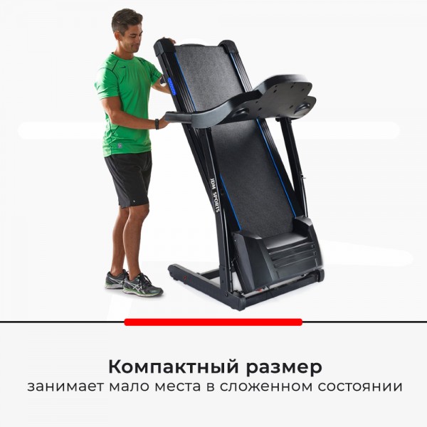 Тренажер обеспечивает спортсменам скорость до 16 км/ч, а ширина полотна 47 см будет достаточно комфортной как для ходьбы, так и для бега. Предусмотрена механическая регулировка наклона до 5 градусов. Модель можно складывать и перемещать на роликах.