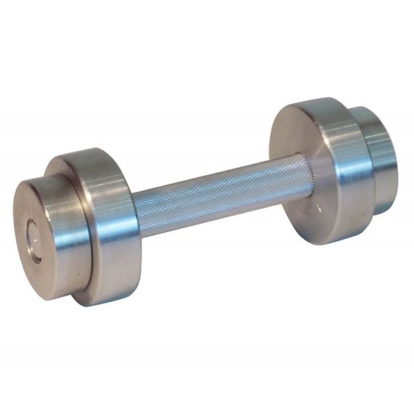 Гантель Спортком изготовлена из прочной хромированной стали. Рукоять имеет противосользящую насечку (диаметр 2,8 см, межпосадочный интервал 13 см). В комплект входит гриф весом 1 кг, а также диски: