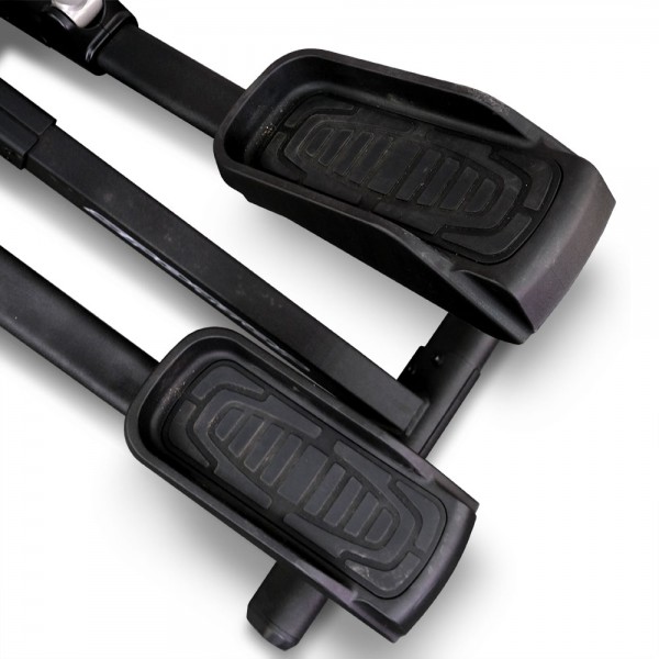 Модель использует тяжелый маховик для предоставления спортсмену 16 уровней нагрузки. Конструкция предлагает два варианта длины шага 43 и 56 см, рукоятки "мультихват" и межпедальный интервал 8 см. Для проверки пульса встроены датчики, можно использовать кардиопояс (в комплект не входит).
