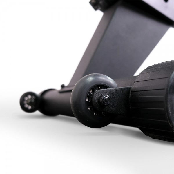 Тренажер имеет компактный размер и колеса для перемещения.