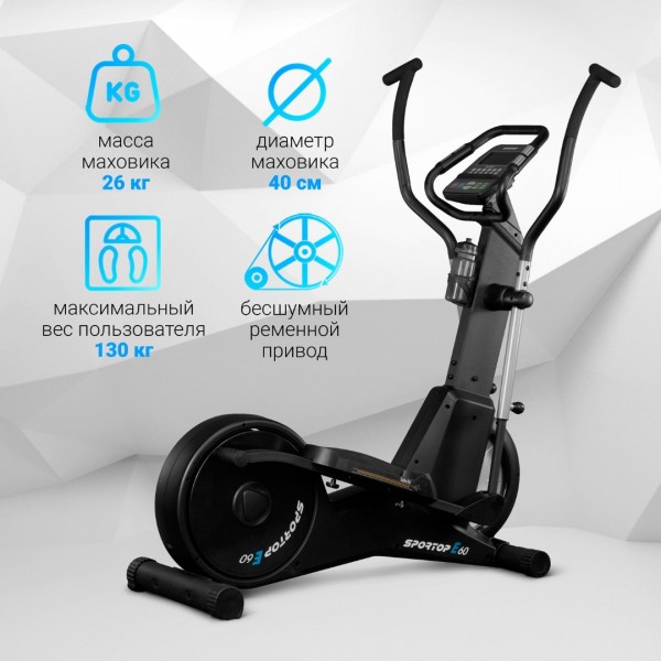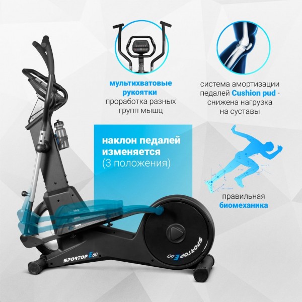 Sportop E60 – современный заднеприводной эллипсоид необходимым набором программ и настройкой наклона педалей.