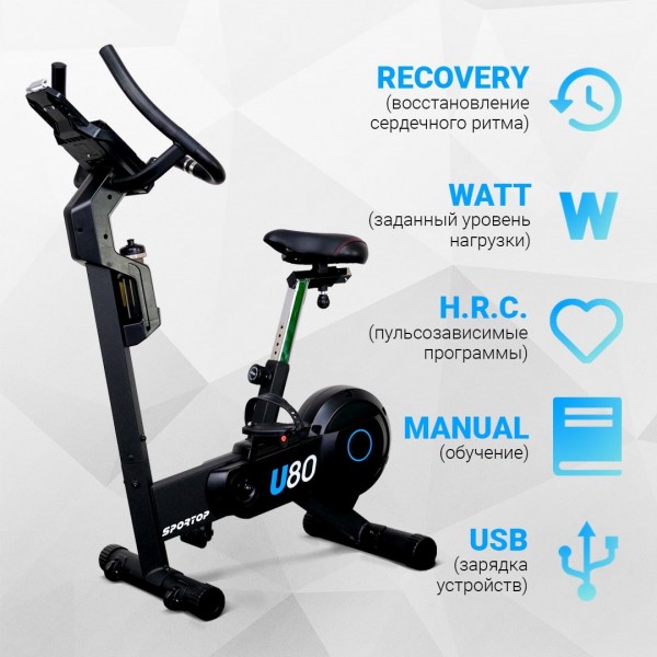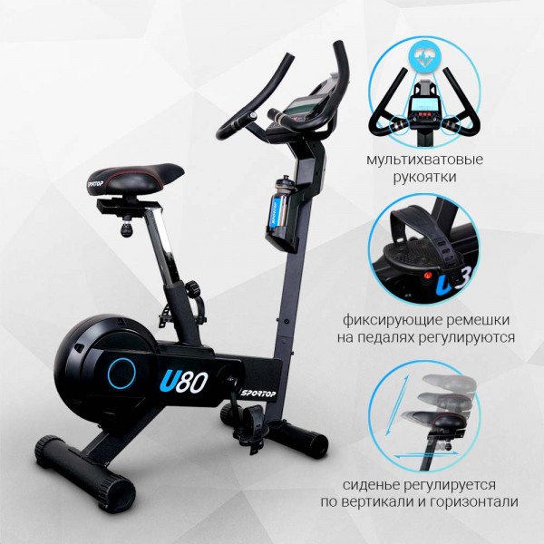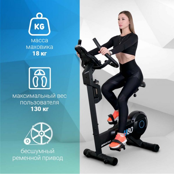 Sportop U80-LCD – вертикальный велоэргометр с продуманной консолью для домашней тренировки. Модель рассчитана на вес до 130 кг
