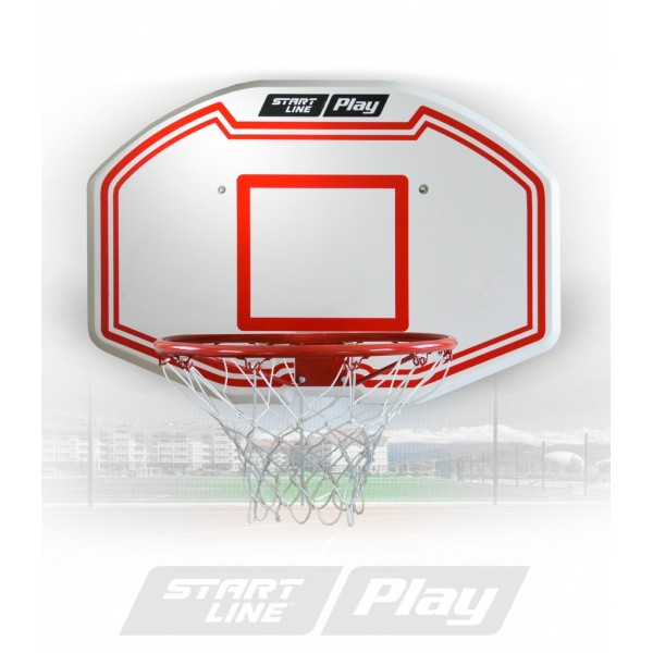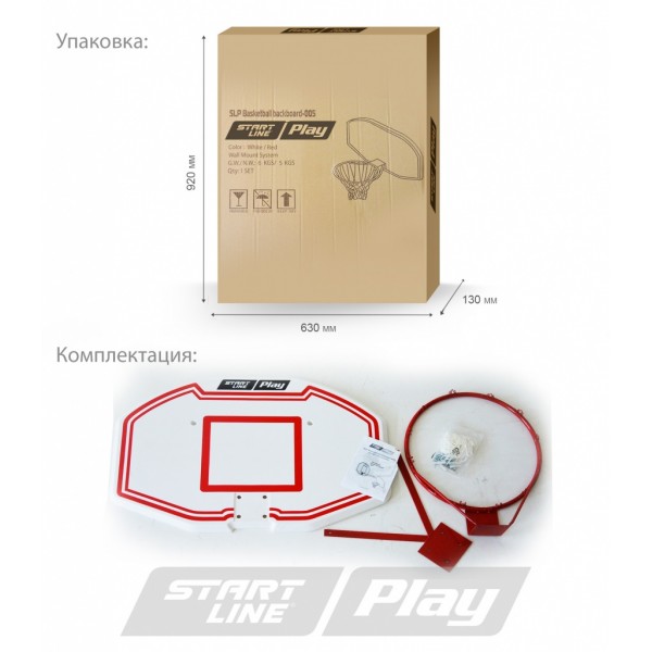 Щит Start Line 005 выполнен из современных материалов, кронштейн для крепления металлический. Баскетбольная корзина в комплекте.